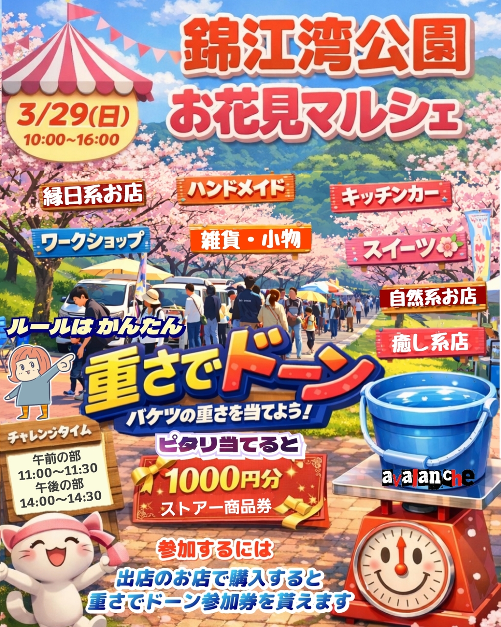 3月29日 日曜日 『錦江湾公園お花見マルシェ』 10;00~16;00 雨天中止 桜並木と、広い敷地とロケット …