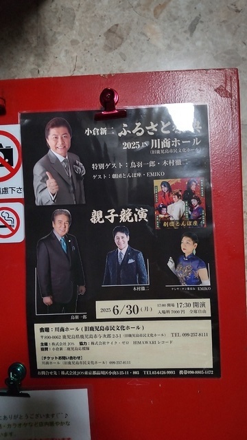 この店にはたまに種子島出身歌手の「小倉新二」さんと弟子の「Emiko」さんが来店されます。会えたら本当にラッキーです。店内にお二人のポスターやサイン入の色紙が飾られています。