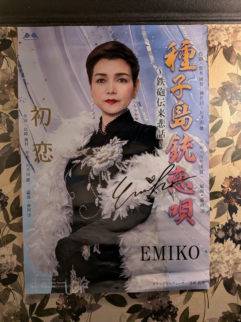 11月23日に種子島出身の演歌歌手「小倉新ニ」さんと、その弟子で「テレサ.テン」の歌真似で有名な「EMIKO」さんがいらっしゃいました。びっくりでした。「前川清ファミリーコンサート」に出演するので来ていたそうです。思わず握手してもらいました。