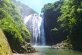 「日本の滝百選」にも選定。高さ46m、幅43m。水量の豊富な滝は圧倒的な存在感を放ちます。